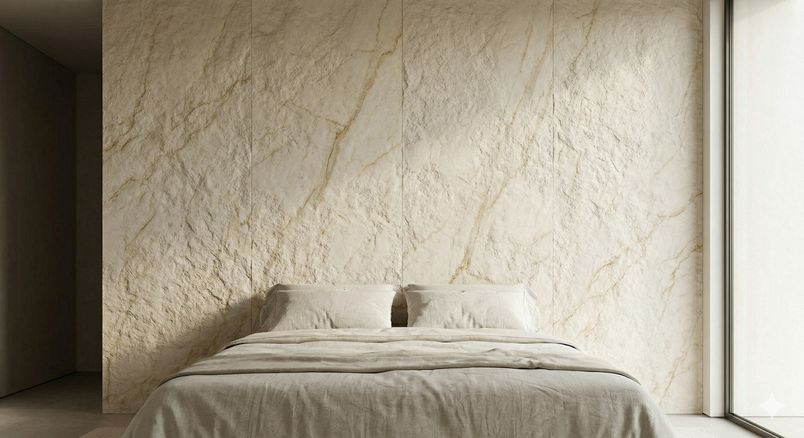 - Tactile Feature Walls in Bedrooms: Install a leather-finished marble slab behind the master bed. The natural texture and cool temperature provide a calming focal point conducive to better sleep hygiene.