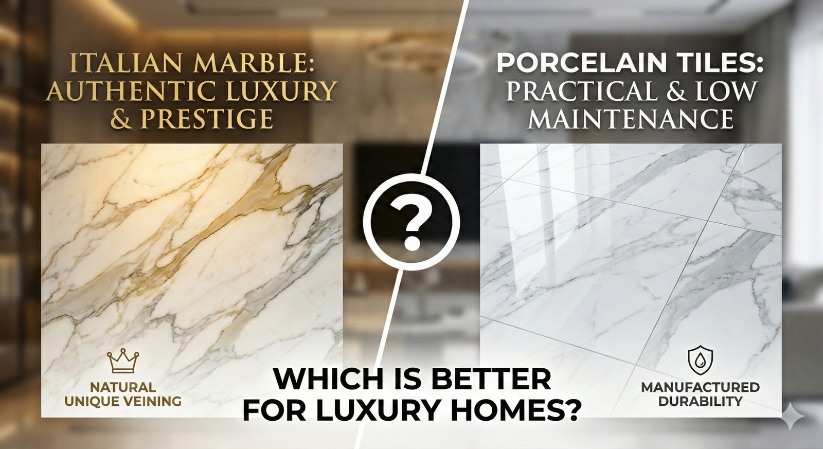 When designing a premium residence, one common debate arises — Should you choose Italian marble or high-end porcelain tiles?