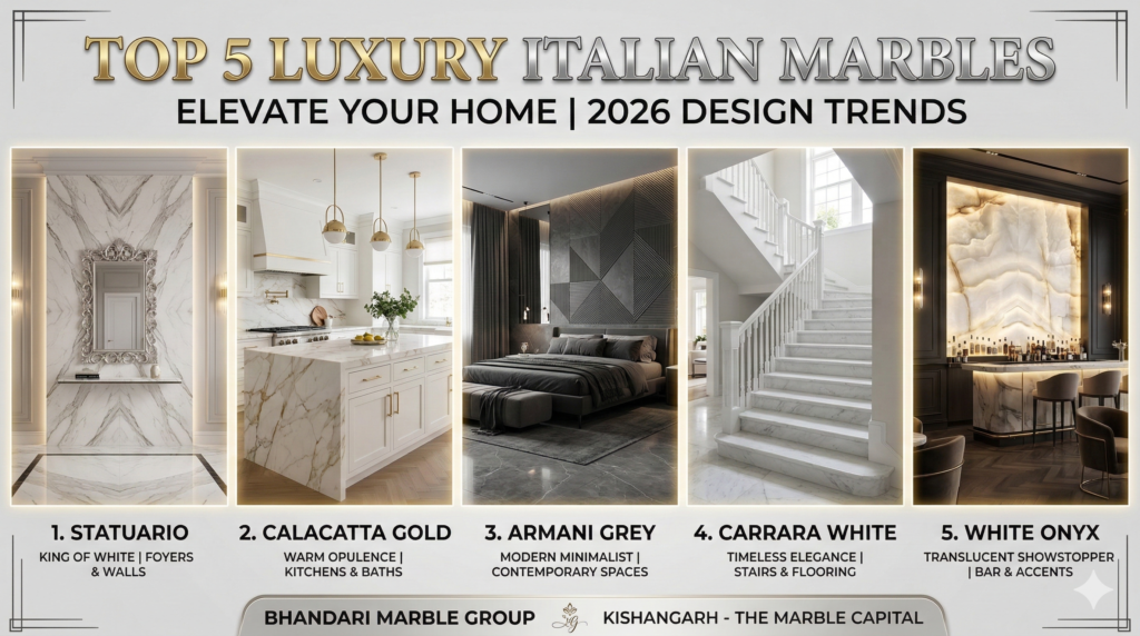 Ready to select the perfect Italian marble for your home? Visit the Bhandari Marble Group showroom in Kishangarh today, or contact our luxury stone experts online to explore our exclusive 2026 collection.