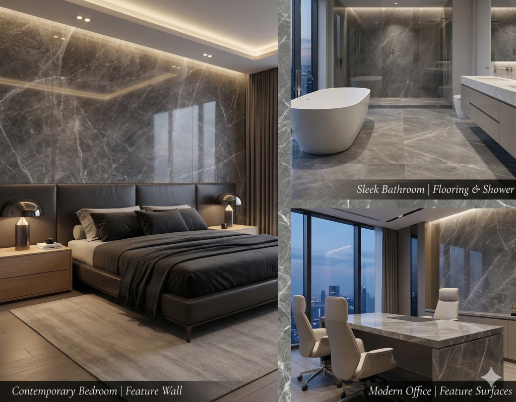 • Best Used For: Contemporary bedrooms, modern corporate offices, and sleek bathroom floors.
